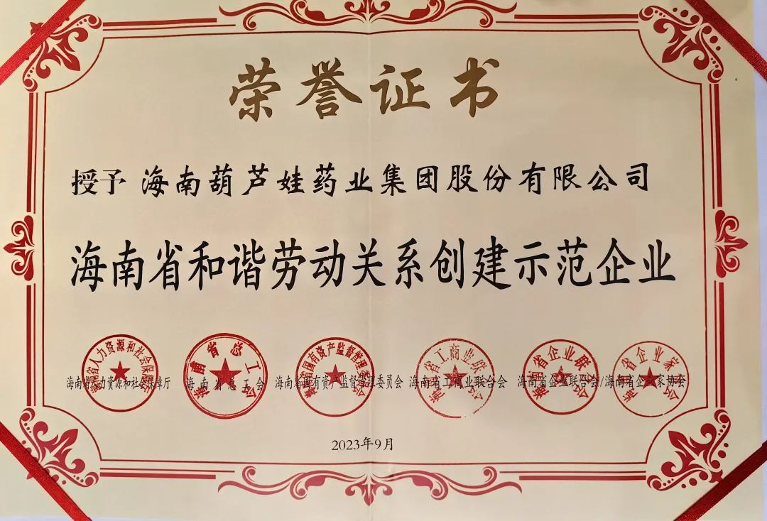 BG视讯药业集团获评“海南省和谐劳动关系创建示范企业”